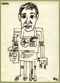 Zettwoch.com proudly endorses Windsor-Newton, Big Red brand soda, White Castle Deep Sea sandwiches (no cheese). and M.U.S.C.L.E. brand action figures. All contents copyright 2002 Dalton, Donald, and Dan Zettwoch. Portrait of the Artist as a Young Dude-bot: Portrait of Dan Zettwoch by his father. |