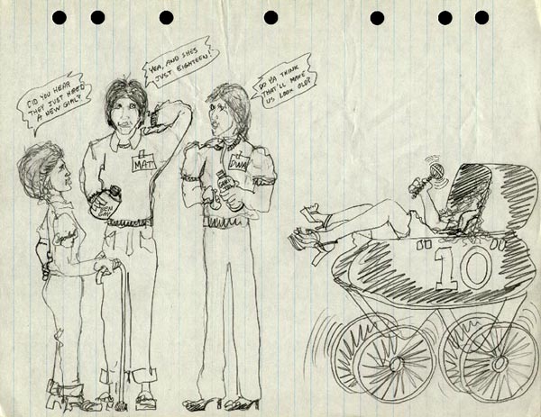 "Did you hear they just hired a new girl?" "Yea, and she's just eighteen!" "Do ya think that'll make us look old?"