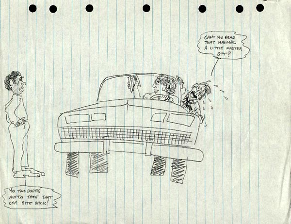 "You two dudes autta take that car rite back!" "Can't you read that manual a little faster Ott?"